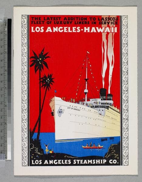 Alt title: Hawaiian via the Southern Route : Direct from Los Angeles. At head of title: Hawaii direct from Los Angeles Pamphlet advertising LASSCO service to Hawaii with photographs of shipboard services, amenities, and destination scenes. Focus of item: City of Honolulu ; City of Los Angeles.