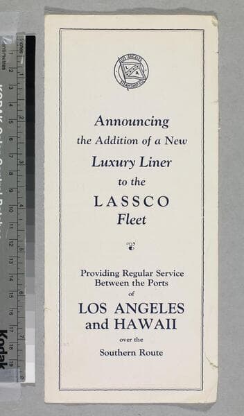 Announcing the addition of a new luxury liner to the LASSCO fleet : providing regular service between the ports of Los Angeles and Hawaii over the Southern Route
