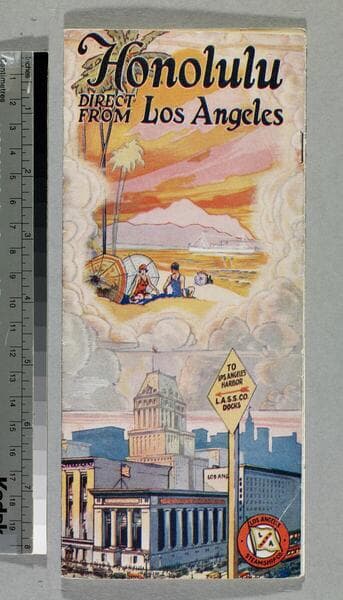"Times-Mirror Printing & Binding House, Los Angeles"--p. [11]. Promotional pamphlet for LASSCO service from Los Angeles to Honolulu; vessel and destination photographs, trip information, and deck plans for SS City of Los Angeles included.