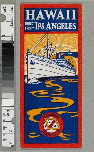 Cover title. Pamphlet folded in half. "J.H. Kemble."--p. 10, typed, lower left corner. Pamphlet for service between Los Angeles and Honolulu. Includes deck plans for the City of Los Angeles, and the Calawaii.