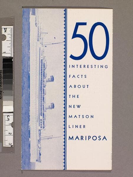 Brochure with vessel information on the new S. S. Mariposa. Focus of item: Mariposa.