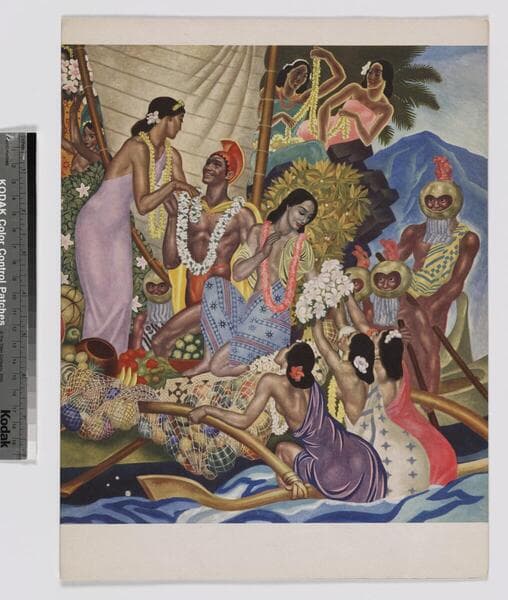 "Maiden voyage Friday, April 30, 1948"--p. [2], below title. Title derived from p. [2]. Oversized menu from the maiden voyage of the S.S. Lurline, with cover art by Eugene Savage entitled "Island Feast." Focus of item: Lurline.