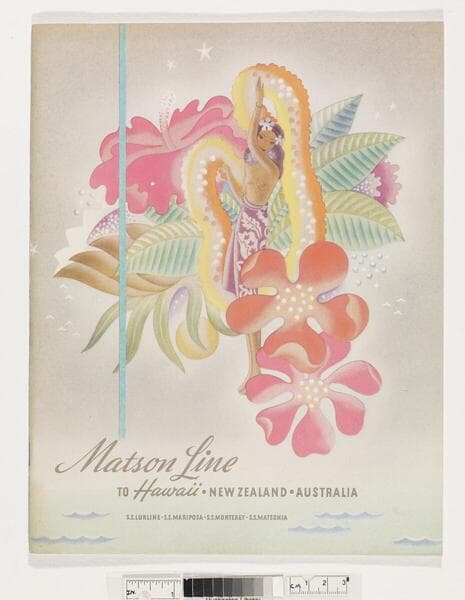 Cover title: Matson line to Hawaii - New Zealand - Australia. Title derived from p. [4]. "PX-32 (478-100M-1039) Printed in the U. S. A."--printer's note, back cover, lower right corner, small type. "American travel service... Pasadena, Calif."--stamped, blue ink, back cover. Booklet providing information on cruise destinations for Matson service to Hawaii, and the South Seas. Focus of item: Lurline ; Mariposa ; Monterey ; Matsonia.