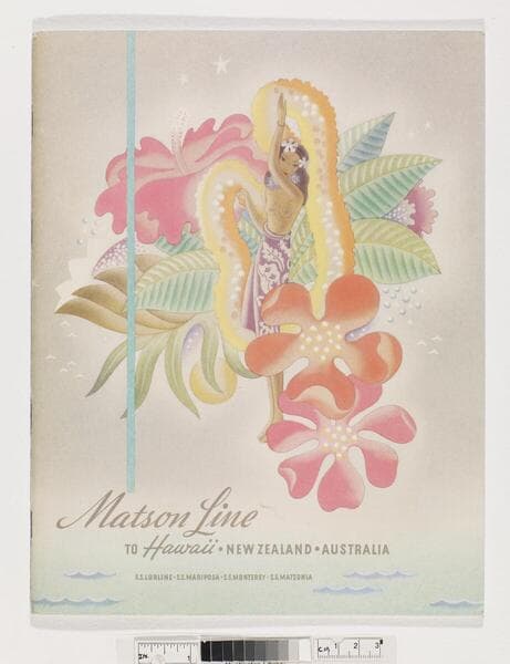 Cover title: Matson line to Hawaii - New Zealand - Australia. Title derived from p. [4]. "PX-31 (477-25M-839) Printed in the U. S. A. "--printer's note, back cover, lower right corner, small type. "American travel service... Pasadena, Calif."--stamped, blue ink, back cover. Booklet providing information on cruise destinations for Matson service to Hawaii, and the South Seas. Focus of item: Lurline ; Mariposa ; Monterey ; Matsonia.