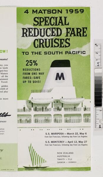4 Matson 1959 special reduced fare cruises to the South Pacific