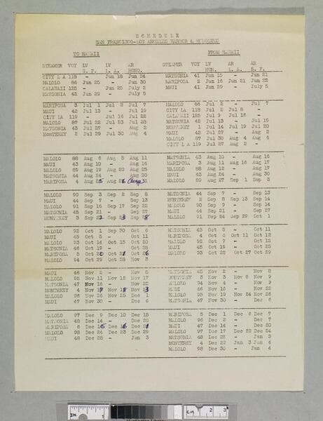 Schedule : San Francisco-Los Angeles harbor & Honolulu
