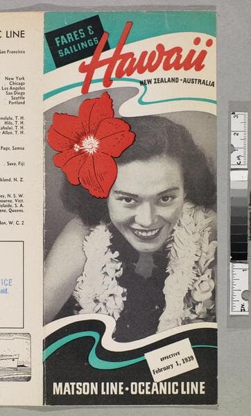 "Effective December 1, 1938"--front cover. "PX52--No. 71 (451-30M-1138) Printed in U. S. A."--p. 16, bottom. "Henry Miele travel service... Los Angeles"--back cover, stamped, blue ink. Ms. inscriptions in blue ink on p. 3. Sailing schedule and fares for cruises between California, Hawaii and the South Pacific; including accommodation descriptions, itineraries, rail trip information for Australia and New Zealand, escorted cruises, inclusive independent tours of Australia and New Zealand, passenger regulations and general information.