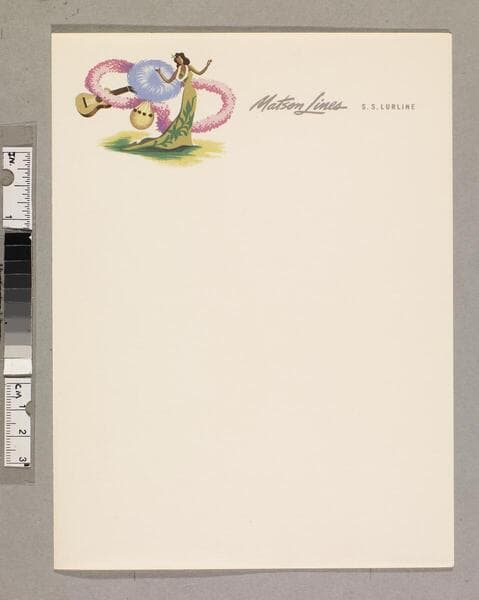"Copyright 1952 by Howard K. Morris"--p. [1], bottom. Novelty card stapled to front cover. "Words and Music by Howard Kekaiohuokalanikiekie (The Misty Seas of the High Heavens) Morris" Signature stamped on sheet music and on the card. Sheet music and lyrics for "Romance on the Lurline." Focus of item: Lurline.