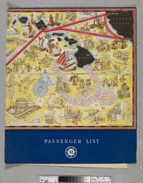 Cover title: passenger list. Title derived from p. [1]. "Sailing from San Francisco for Honolulu... Friday, January 30, 1948 at 5:00 p. m."--p. [1], below title. Souvenir list of officers and first class passengers. Focus of item: Matsonia.