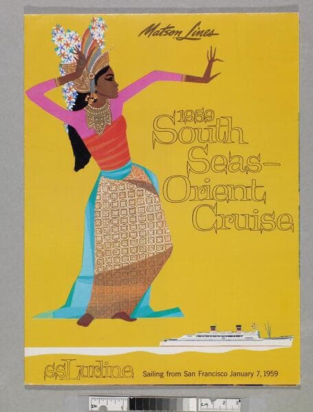 "A314-54 (200M 4102-532)"--back cover, bottom. "Duffin's travel service... Hollywood, Calif."--back cover, stamped, purple ink. At head of title: Preliminary announcement. Advertisement for cruise sailing from New York to California, Hawaii, the South Seas, South East Asia and East Asia; including route map, sail dates, a condensed itinerary, and fares. Focus of item: Lurline.