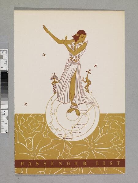 "Sailing from Los Angeles harbor to Honolulu Friday, February 16, 1940, at 5:00 P. M."--p. [1], below title. Novelty first class passenger list for cruise from Los Angeles to Honolulu with illustrated route map on front and back covers. One of the passengers listed is Lieut. Commander John Jay Ide. Focus of item: Lurline.