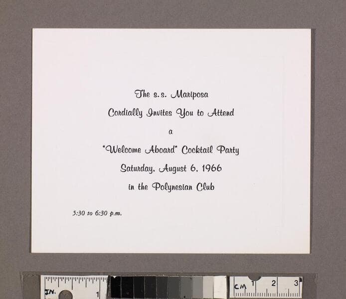 "[Oct. 1970]"--ms. inscription in blue ink, recto. Typed letter introducing two winter cruises to Mexico's West Coast aboard the SS Mariposa. Focus of item: Mariposa.