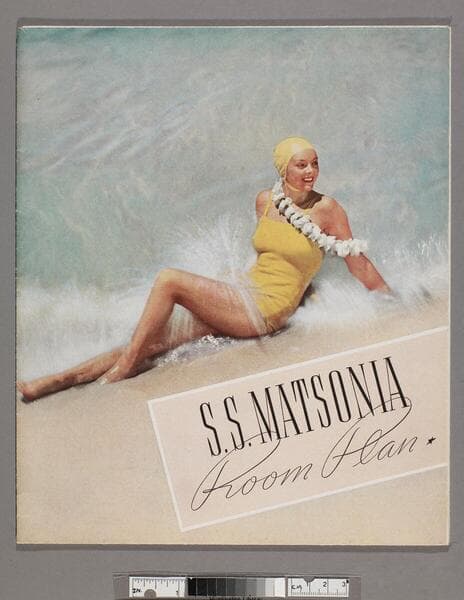 "PX-272(336-9M-937) printed in U. S. A."--back cover, bottom. "American travel service... Pasadena, Calif."--back cover, stamped, blue ink. "File copy for office use only"--front cover, stamped, blue ink. Ms. inscriptions in pink, p. [4]. Deck plans for the SS Matsonia ; including vessel images, vessel description, and route map. Focus of item: Matsonia.