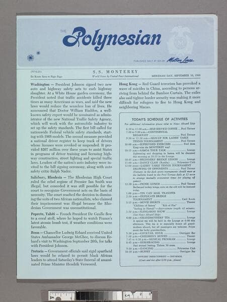 Informational insert about American Samoa for the shipboard newsletter "The Polynesian." Focus of item: Monterey.