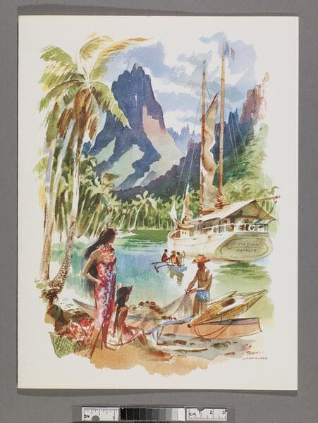Title derived from p. [2]. Shipboard dinner menu and wine list for "French night" aboard SS Monterey with cover illustration "Tahiti" by Louis Macouillard. Focus of item: Monterey.
