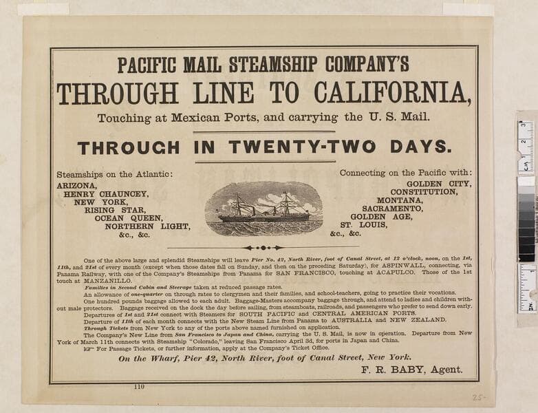 Pacific Mail Steamship Company's through line to California, touching at Mexican Ports, and carrying the U.S. Mail