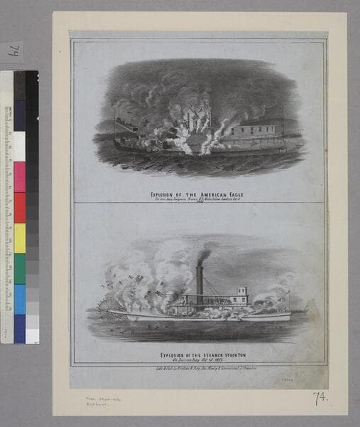 Explosion of the American Eagle. [upper] Explosion of the Steamer Stockton. [lower]