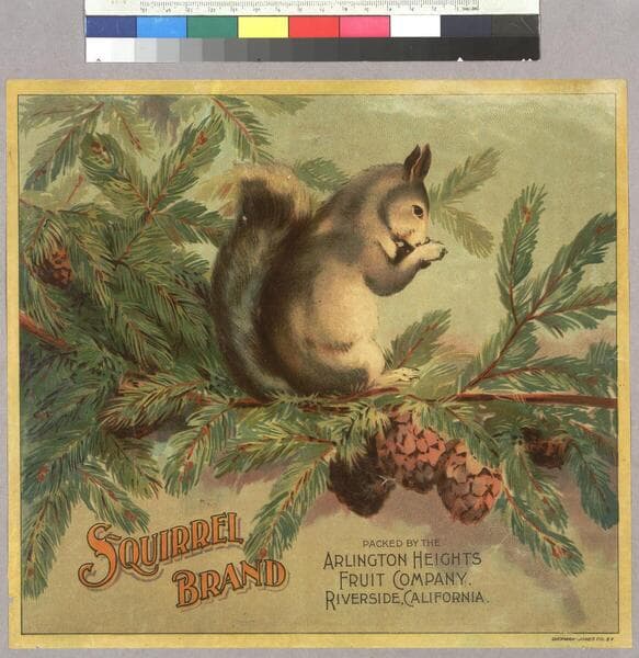 The Citrus label collection contains more than 1,500 lithographed labels related to the California citrus industry in the United States from 1880 to 1960, with the bulk of the collection dating from 1890 to 1940. The vast majority of the collection consists of lithographed labels produced for Californian growers, packers, and distributors to identify brand names and packing locations on wooden shipping crates of oranges, lemons and grapefruits. Many of the labels were printed by Los Angeles and San Francisco lithographers. The collection includes a range of lithography techniques from crayon drawing and hand stippling to the use of Ben Day screen patterns and half-tone lithography. The collection also includes more than 100 examples with "bronzing," a printing technique where varnish is printed on the label, followed by a dusting of fine bronze powder. A significant number of labels are stamped on verso with a received date by the Fruit Growers Supply Company, and some include signatures of approval or notations about printing corrections. The collection provides a broad view of the development of citrus fruit advertising over time, and also touches upon topics of commerce, manufacturing, travel and tourism, and promotion of the western United States. In the earliest examples, themes include naturalistic designs of flowers, animals, women, historical subjects, and scenic landscapes. Brand names, simple designs, block letters, and geometric patterns dominate in later examples. Many of the labels depict orange groves, scenic views, or flowers, though the collection also includes a wide variety of imagery beyond these themes including Native Americans, transportation, children, and portraits of famous or fictional people.