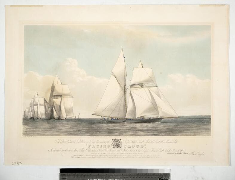 To Count Edmund Batthyany, Rear Commodore of the Royal Albert Yacht Club, this print of his schooner yacht "Flying Cloud," in the walk over for the second class prize, value £50, in the schooner and yawl match of the Royal Thames Yacht Club, June 8th 1870, is dedicated by his obed't servant, Josiah Taylor