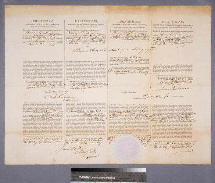 James Buchanan, president des Etats Unis d'Amerique. A tous ceux qui les presentes, verront:
