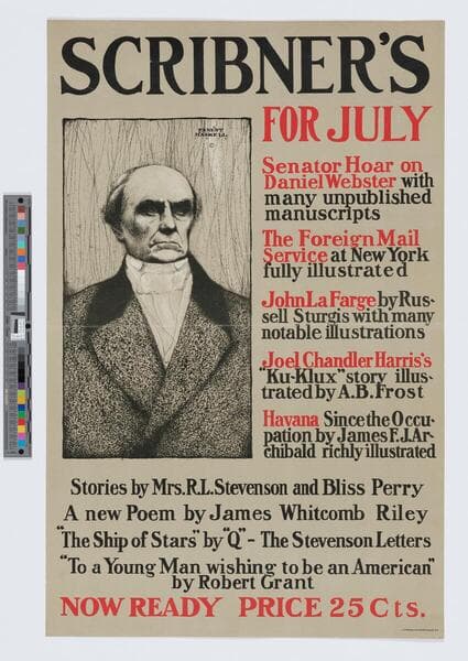 Image of an advertisement for Scribner's magazine featuring a full-length portrait of a man standing next to a wall.