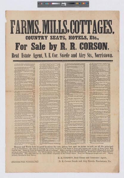 Farms, mills, cottages, country seats, hotels, etc., for sale by R.R. Corson