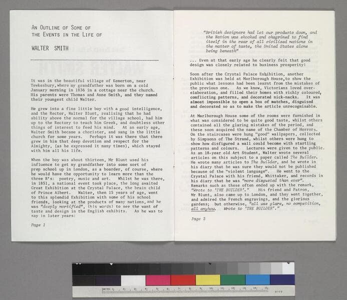 One pamphlet, ca. 1935, entitled A Quarter Century of Public School Art: Have We Made Good?, by C. Valentine Kirby, distributed by Binney & Smith Co., New York. This pamphlet is 15 numbered pages in length, and outlines recent progress made in art education in the United States.