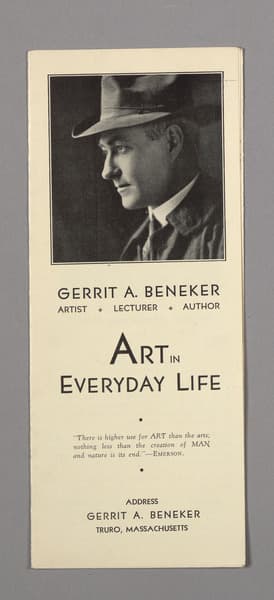One flyer entitled Arts and Crafts at the Chautauqua Summer Schools, published by Chautauqua Institution, Chautauqua, New York, 1930. This 8-page (a single sheet folded into fourths) brochure advertises various summer classes offered by the Chautauqua School of Arts and Crafts. The classes offered fall under three broad categories: Art Education, Industrial Arts, and Practical Craft Courses. The dates of this particular summer program are July 7-August 15, 1930. This brochure is accompanied by a mailing envelope addressed to "Miss Mabel Spofford, Winchester Arms, Gloucester, Mass."