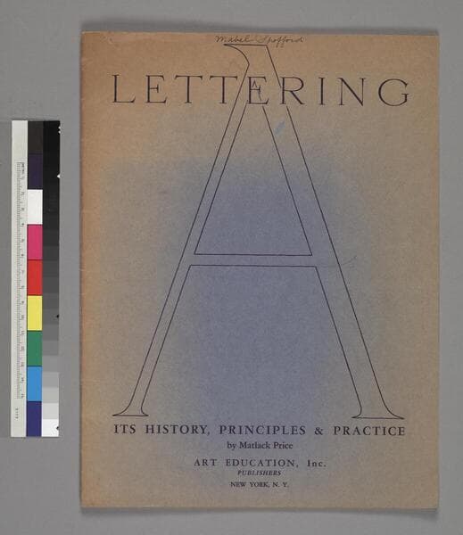 One envelope of instruction sheets on lettering. The majority of the 19 sheets appear to be components of The ABC of Lettering for Public Schools by Schuyler Bull, of Rochester, New York. This set is composed primarily of lettering sheets (of alphabets, numbers, and phrases) and some printed instruction text written and copyrighted by Schuyler Bull. Additional sheets are included also, but these appear to have come from other sources. Accompanying these sheets is an envelope addressed to Miss Mabel Spofford.