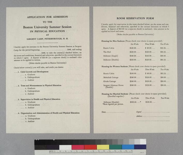 Application for Admission to the Boston University Summer Session in Physical Education at Sargent Camp, Peterborough, N.H