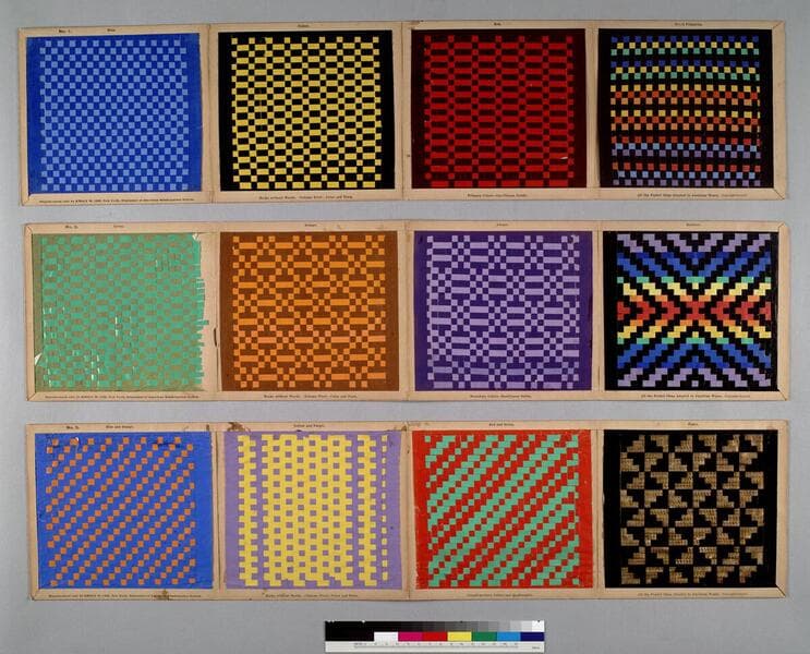 One boxed set of wooden drawing models entitled New Forms and Solids for Object Teaching, manufactured by J.W. Schermerhorn & Co., New York, ca. 1870. The set is comprised of 44 forms, including a six-inch ruler, housed within a wooden box. The top lid of the box is removable, and there is a paper label mounted to its underside. The subtitle reads "Containing sixty-four pieces- there being forty-eight plane forms, fifteen solids, and a six-inch rule, among which are several new forms and solids, not included in any other set." Below the title is a numbered inventory of the forms. At the bottom of the label is an advertisement for J.W. Schermerhorn & Co.'s illustrated catalog of school material. Each of the forms is stamped with a number, which corresponds to the list.