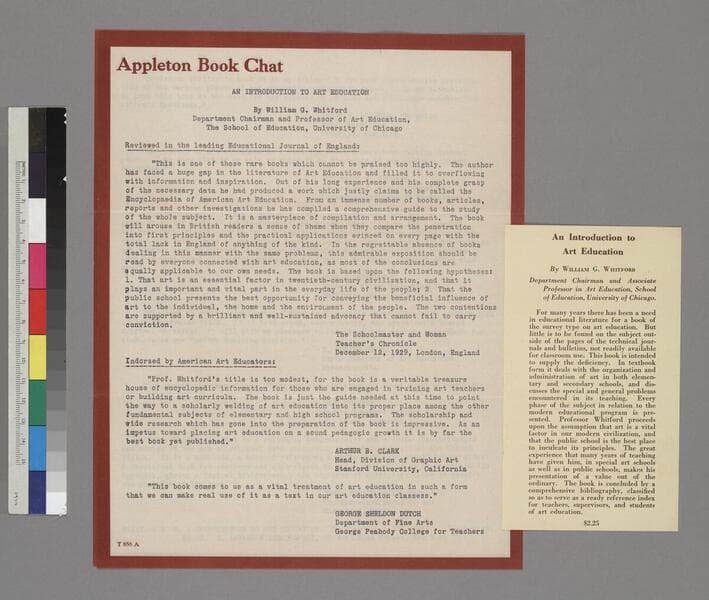 Two publisher's advertisements for a book entitled An Introduction to Art Education by William G. Whitford