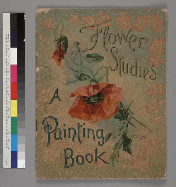 One painting book entitled Landscape Painting Book, published by McLoughlin Bros., New York, copyright 1902. The front cover shows a winter landscape. The title page features a different title (Object Painting Book) than that found on the front cover. The inside front cover reads "a few practical directions for young painters," including how to mix paints. The back inside cover depicts a palette of red, green, yellow, blue and purple; matching paint has been applied to each color by the student. The book contains 8 pages of images, half of which are printed in color, the other half in outline. The outlined images were filled in using the complementary color image as a guide. All of the outlined images have been filled in with watercolors. In the upper-right hand corner of the title page, in pencil, is written "1.00".