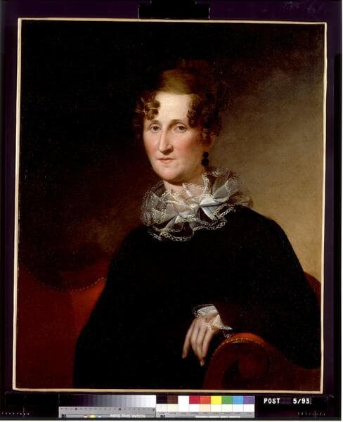 Painted late in his career, James Peale's portrait of Ann Britton Cook is done in a softer, more painterly style than his earlier work such as William Flintham (1805) and A Girl Holding a Doll (1804). Peale used similar elements in the portraits of Cook and Flintham-the leather-covered furniture and a plain background with a red curtain-but in portraying Cook, he focused more on the contrast of light and dark, giving her a fully developed physical presence. The attention to detail characteristic of Peale's style is evident in his treatment of Cook's lace collar and her elaborate coiffure.