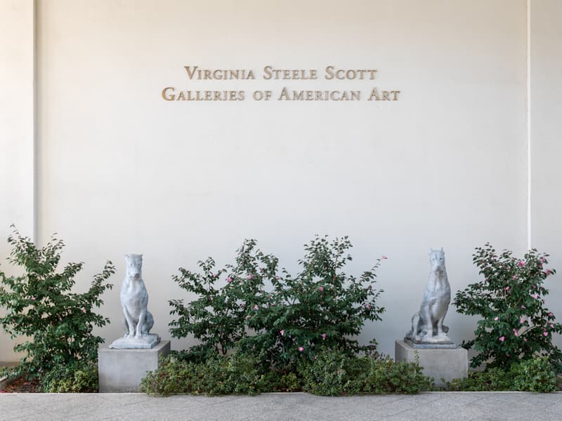 A few years later, Anna began to grow in reputation as a skillful animalier, or artist who depicts animals. Her first sales and solo exhibition were in her home town of Boston. In 1903, she moved to New York City, where she sculpted animals at the Bronx Zoo and was roommates with fellow sculptor Abastenia St. Leger Eberle. Throughout her long career, during which she achieved unprecedented awards, recognition and commissions in an era generally prohibitive of women artists, she sculpted exotic animals as well as historic and mythical human figures, ranging from statuettes to public monuments. However, she often returned to dogs and great danes, such as the pair in granite now at Brookgreen Gardens, and two in bronze at the Museum of Fine Arts, Boston. Commenting on her success, the sculptor said: “I always got a great deal of sympathy from my family.” This included Arabella, who purchased The Huntington’s Carved Stone Dogs as a birthday gift for Henry. Though they look alike, the two Danes have subtle differences, for example, the angle of their heads, position of their ears, or how they sit.