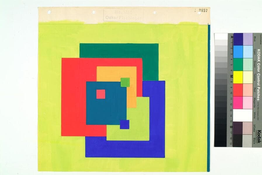 - These seven works were to have become part of a two to three minute film for which Fischinger created 271 separate graphite and tempera paintings. They were then to be photographed and loop printed so that they would appear several times in different combinations. The project was halted before reaching this stage because of the Nazi ban on 'degenerate' art, which included abstract art.