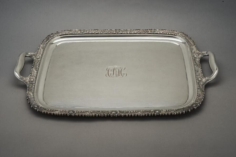 Tiffany introduced its Chrysanthemum pattern at the Paris Exposition in 1878. Patented in 1880, it quickly became one of the company's most popular designs. Chrysanthemum coffee and tea services feature lush blossoms and clusters of leaves, typical not only of the Rococo Revival style but also of the newly fashionable style of Japonisme that was becoming a major part of Tiffany's silver designs. Chrysanthemums have great significance in Japan, and their application on American silver reflects changing Victorian tastes and appreciation for the newly opened trade with Japan. This service belonged to Caroline Huntington Holladay, Henry E. Huntington's youngest sister, and the engraved initials are hers. It may have been given to her on the occasion of her marriage to Edmund Burke Holladay in 1896 by her uncle Collis P. Huntington and his wife Arabella.