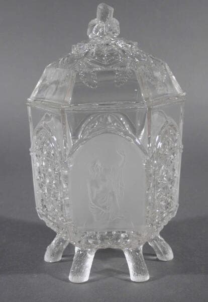 Active in Philadelphia, Pennsylvania, between 1867 and 1900, Gillinder and Sons was one of several American glassware manufacturers specializing in pressed glass in the last quarter of the 19th century. The company is best known for colorless glass designed in a wide variety of forms and styles to appeal to the changing tastes of America's burgeoning middle classes. The frosted glass surface of this ware was created by using an acid-etching technique developed around 1870.