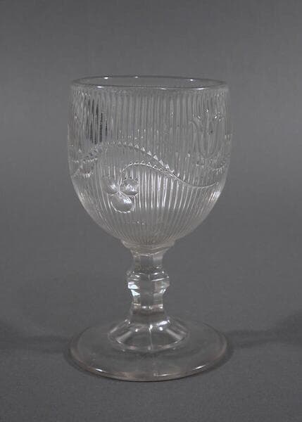 In 1607 a small glasshouse was erected at the settlement in Jamestown, Virginia, thereby distinguishing glassmaking as one of the first industries practiced in the North American colonies. The industry did not become firmly established until the nineteenth century, however, when a technological innovation allowed Americans to mass-produce glass tableware at affordable prices. As an alternative to the labor-intensive and highly skilled process of glass blowing, manufacturers developed heavy metal presses that could stamp hot glass into finished form in cast molds. This new technology revolutionized the industry. Pressed glass could be made quickly and cheaply in a wide variety of attractive patterns. By the 1840s celebrated makers such as the Boston Sandwich Glass Co. of Sandwich, Massachusetts, and Bakewell, Pears & Co. of Pittsburgh, Pennsylvania, were pressing tableware forms in matching patterns featuring both geometric and stylized, representational matifs. This glass has an especially high lead content, giving it the weight, bell-like resonance, and brilliance so prized by collectors.
