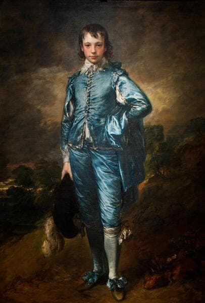The Blue Boy was Gainsborough's first attempt at depicting full-length Van Dyck dress—knee breeches and a slashed doublet with a lace collar. This type of costume recalled the work of Anthony van Dyck, the Flemish painter whose glamorous portraits of aristocrats had revolutionized British art decades earlier. When the painting was shown in 1770 at the Royal Academy, the nod to Van Dyck drew comparison between the two artists and helped create a name for Gainsborough among the exhibition's London audience.