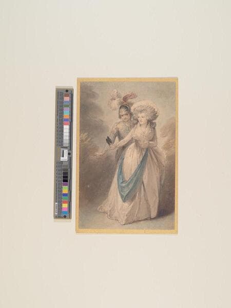 Well-known book illustrator Thomas Stothard produced this series of portrait drawings of famous actors and actresses, shown in character from several popular productions, as illustrations for a publication on English theater. Contemporary audiences often associated the lifestyle of players, especially actresses, with worldly vice. Indeed, Elizabeth Farren was as well known for her very public affair with the Earl of Derby, who she later married, as she was for her acting skill. When extracted from their publication by diligent collectors, the prints after these drawings often reappeared in extra-illustrated books, indicating their popularity.