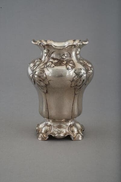 In response to the growing popularity of handwrought metals, Gorham introduced a line of silver called Martelé in the late 1890s. Taking its name from the French word for hand-hammered, Martelé silver was designed under the direction of William C. Codman and produced by some of the company's finest craftsmen. Registering the Martelé trademark in 1899, Gorham introduced its new line at the 1900 Paris Exposition to great popular and critical acclaim. The long, flowing lines, asymmetry, and naturalism of Martelé silver all reflect the influence of French Art Nouveau. While not a matched set, this tea service, with its curvilinear forms and distinctly handwrought character, is typical of Gorham's finest Martelé silver.
