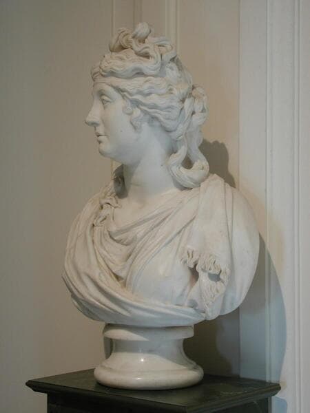 Jane Gale married her cousin, William Gale in 1776 and both adopted the additional surname of Braddyll the same year. William was a politician and personal assistant (Groom of the Bedchamber) to King George III. Joshua Reynolds painted several portraits of the family and its members. Nollekens' sculpted image shows Jane with antique hairstyle and drapery, emphasizing her sophistication.