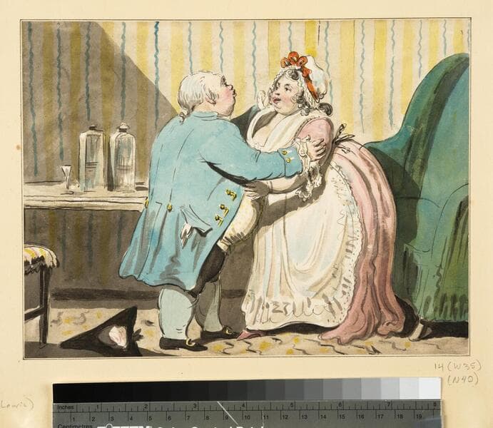 A Young Woman Pulling up a Stocking with a Dog Watching