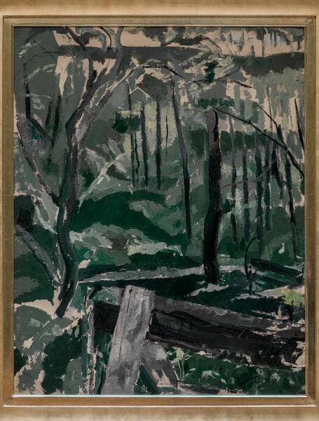 Edwin Dickinson painted his spontaneous landscapes outdoors in a single sitting lasting from two to four hours. The method of completing a painting in just one session is called premier coup, or "first strike." Pioneered by French artists in the late 19th century, the technique was passed on to Dickinson by his teacher William Merritt Chase, who instructed his students to paint directly from nature. Dickinson, however, pushed the premier coup beyond the Impressionism of Chase. Here, the vigorous brushwork and abstract forms become a record of Dickinson's experience with nature. Dickinson was among the more intuitive practitioners of early American Modernism. The immediacy of Dickinson's painting, with its gestural brushwork, was embraced in the 1950s by Abstract Expressionists, with whom he exhibited.