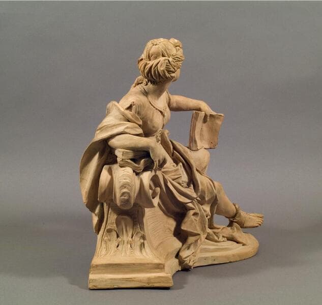 Sibyls were ancient priestesses who guarded writings that foretold the future. In this terracotta sculpture, the Sibyl is shown gracefully posed among her books. The sculpture was conceived as a pair with the biblical Prophet, installed opposite. The prominent display of books from which the figures dispense their oracular wisdom suggests these terracottas may have been models for larger sculptures intended to ornament the library of a learned patron.