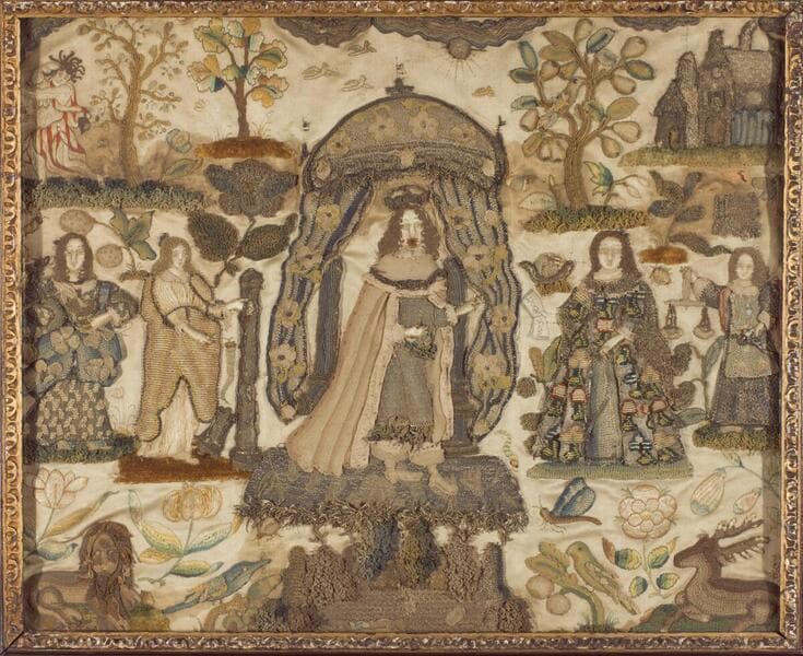 King Charles I as Solomon with Four Cardinal Virtues: Justice, Wisdom, Fortitude, and Temperance