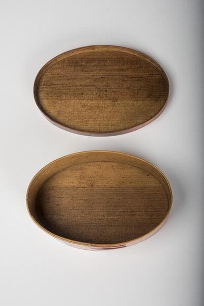 While the Shakers designed many objects of simplicity, utility, and beauty, they are perhaps best known for their distinctive oval storage boxes secured with swallowtail "fingers," or laps. Oval box making began in the 1790s at the New Lebanon, New York, community (the Shaker's spiritual center) as one of the first Shaker industries, and survived well into the 20th century. While boxes were produced for use by the Shakers themselves, the vast majority were marketed and sold to outsiders, becoming one of the Shakers' most profitable commercial products. These five boxes, of standard graduated sizes, were designed when not in use to nest perfectly one inside the other. Though men and women lived separately in Shaker communities, they believed in gender equality; they also believed in celibacy, common property, and the second coming of Christ.