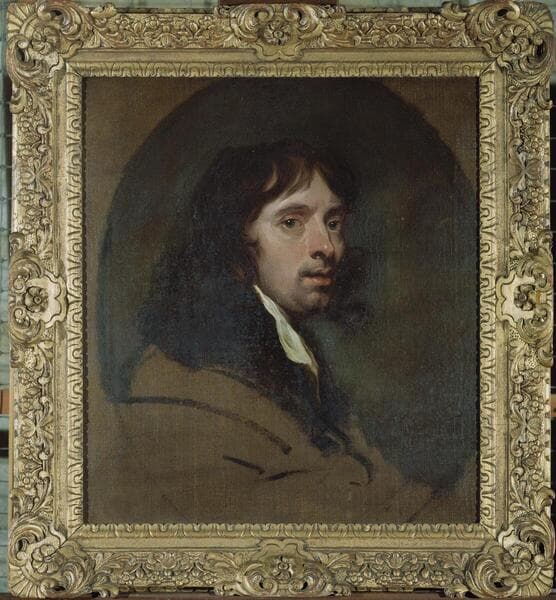 This painting was formerly attributed to Godfrey Kneller and identified as a portrait of the writer John Dryden, but neither of these associations now seems credible. Resemblance to authenticated likenesses of Dryden is minimal, and the sensuous conception of the facial features has more in common with the era of Peter Lely than that of Kneller. The incomplete state of the painting (evidenced by large passages of entirely unpainted canvas and by the extremely sketchy rendering of the drapery) complicates the question of attribution. The bold handling, which points to an artist such as William Dobson, may represent only the initial blocking-in of the portrait which would have become more smoothly finished at a subsequent phase of the painting process.