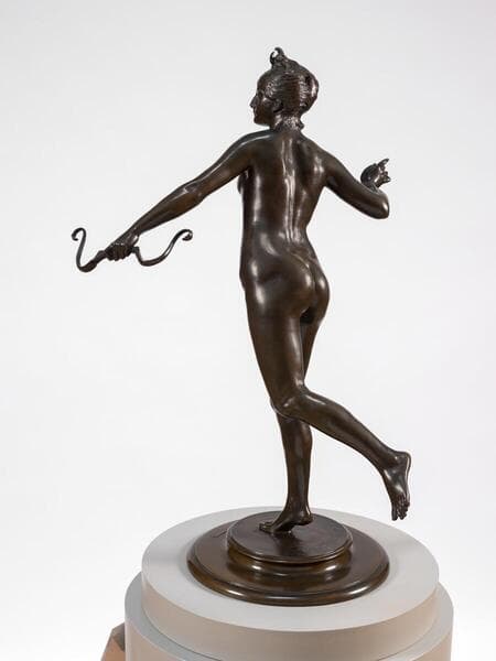 Although the subject of Diana is the ancient Greek goddess of the hunt, MacMonnies naturalistic depiction of her form and the dynamic movement of the figure, as Diana propels herself forward after shooting an arrow, mark a shift away from the static Neoclassicism of much 19th-century American sculpture. Diana's face and figure are based on a professional model, and the sculpture's arms are those of his wife, Mary.